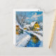 Snowy Village with Stream and Trees Fantasy Painti Vykort