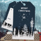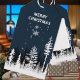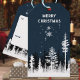 En minimalistisk och vackert utlämnad vinterkväll med mörk mot ett djupt marint himlar med gigantiskt snöflingor och ord, "God jul" längs toppen. Baksidan har en vit kvadrat ovanpå grafiken som du kan använda för att skriva från och till.