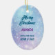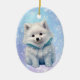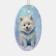 På framsidan av denna Helgdag är ornament bilden en vacker vit valp med blå halsduk. Puppen sitter mitt i snö som faller på en söt övertoningsblå och lavender abstrakt bakgrund. Baksidan har samma snöflingbakgrund med fält som du kan anpassa. Oj!