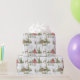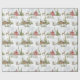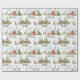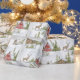 Denna julomslutning har pappra inslag i snö täckte loggkabiner och röda A-ram-hytter med hjort och renar i snö.