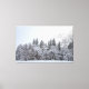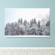 Bilden fångar upp ett serene vinterlandskap med en skog täckt av snö. Olika träd, inklusive tunga och lövgiga ämnen, är tungt lastade med snö och skapar en vit och grått färg palett. I bakgrunden döljs ett stort berg delvis av mist eller moln, vilket ökar djupet på scenen. Marken är också täckt i ett tjockt lagrar i snö.