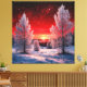 Snowy Winter Forest Under Red Sunset Canvastryck