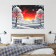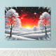 Snowy Winter Forest Under Red Sunset Canvastryck