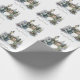 En underbar nordisk vinterscen med snö, en stuga som är synlig utanför ett fönster som är dekorerat med blå löv.