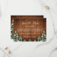 Spara datumet för bröllopsinbjudningskort. Rustiskt brunt trä, snöbakgrund och snöskog. Mysiga vintagen land stil. Det finns fler artiklar i vår butik i stil. Du kan redigera designen ytterligare, ändra färg, typsnitt och lägga till extra genom att klicka på länken "anpassa ytterligare".