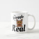Snuggen är Real Cute Lover's Coffee Mugg. Den här kaffemönsterdesignen av AARONDesignsUS har en mycket söt kattunge tillsammans med frasen The Snuggle är Real. Det är väktaren mugg för att sippra medan man gungar! Bakgrunden färg är vit.