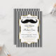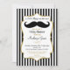 En elegant svart och guld snurrbart bebis shower inbjudan med falskt guld glitter accent ram och svart och vita ränder med guld och svart text och en rolig svart snurrbart skägg. Denna eleganta pojke bebis shower inbjudan är precis vad som behövs.