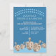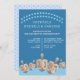 Personalisera dessa söta inbjudningskort till Hanukkah-middag med dina egna ord och text. Designade i olika nyanser av blått med fem simulerade grafiska dreidlar av rustik ek i botten, är dessa Hanukkah-inbjudningar lätta att anpassa så att du kan vara värd för en cocktailfest, middag eller en dagtid Chanukah-firande för barnen. En dubbel rad av ljusblå prickar böjer sig försiktigt över toppen av inbjudan följt av fyra textuppsättningar, en i ljusblått och tre i vitt, som du kan redigera med dina egna festsdetaljer. Dessa dreidlar på mörkblå "Festival of Lights"-inbjudningar är ett sött sätt att inbjuda vänner och familj till din speciella högtidsfirande.