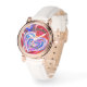 En elegant guld-klocka med vacker rosa, röd och blå, flytande abstrakt utformning. Den här söt klockan levereras med ett elegant vitt läderarmband. Titta på ansikte har ett textmeddelande. Text och foton är anpassade och kan enkelt anpassas till dina behov genom personlig. Denna unika och vackra klocka är den bästa gåvan till din fru, flickvän och mamma. Underbar födelsedagspresent, bröllop, årsdag, helgdag, Alla hjärtans dag, Mor dag och för dig själv! Ett verkligt unikt smycke biet, som får alla kvinnor att känna sig älskade och speciella!