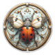Gorgant Art Deco-bild av en ladybug med diamantaccenter på hennes vingar och överkropp. Bakgrund är en ljusblå vintage i söt.