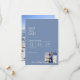 Den här vackra blåa besparingen av datumet gör säkert dina gäster lycklig. En enkel, klassisk design med modern känsla. Fotot på baksidan gör dina gäster underbara till en keepy! Om du vill ha hjälp med att anpassa dig ytterligare kan du skicka ett meddelande till oss.