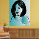 Den här poster innehåller en stiliserad originalvektorbild av en söt kvinna med en lush-hårstil som är gjord i blåa nyanser. Gör en underbar originalvägggrafik för en skönhetssalon eller ditt hem.
