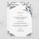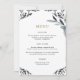 Enkel och söt blå grått foliage gräns bröllop-meny med klassisk typografi. Visa den här botaniska bröllop-samlingen för att samordna inbjudningar och tillbehör.