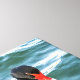 En vacker svart svan afloat i ett blått hav på den underbara inslagna duken.