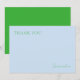 Säg 'Tack' med stil! Praktiskt för hemmakontoret, ha dem till hands när du behöver visa din uppskattning. Kortet är pudrat blått och har grön personlig anpassning. Baksidan är i djärkt grönt för att skapa en stilfull kontrast. Anpassa med valfri text genom att uppdatera den användarvänliga mallen.