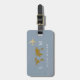 En fin och dammblå bagageblått personlig med märkre med sitt eget initialer och namn, med världskartan och ett flygplan