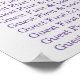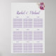 Bistå gästerna i bröllop till deras platser med hjälp av detta vackra sittschema. Utformningen visas i en lilaisk bakgrund och har en underbar visning av lila blomma i det översta diagrammet. Detta följs av parets eleganta skript i namn i lila kursiv stil. Under finns mallar för infogning av gäster namn på det tilldelade borden. Köp hela samlingen för matchande artiklar.