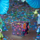 Fin blommigt av mörk med ljusa påsar av färgstarka blommor. Perfekt för ett trädgårdstek party eller något annat med blommigt tema.
