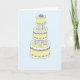 En bröllopstårta i tre våningar i bleka pastellfärger, med orden 'Bröllopscanceltering' skrivna undertill.