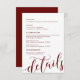 Det här är det moderna, vackra, burgundyskript, kortet för detaljinformation om Bröllop eller informationshöljet, där du kan inkludera din bröllopsmottagning, boendealternativ, din bröllop webbplats med flera. Du kan ändra teckensnittet färg och lägga till bröllop i matchande teckensnitt/text. #TeeshaDerrick