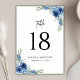 Snygg Dusty Blue Blommigt Bröllop Bordsnummer