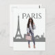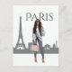 Pariset, Frankrike-konstruktionen, som omfattar Eiffel Torn, med en vacker flicka i trendiget klädd i Parisian mode.