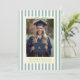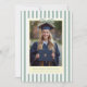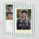 En förfinad snygg examensdesign med klassiska gröna ränder, en mjuk rosett detalj och en ren layout för flera foton som är utformad för att visa dina favoritögonblick. Den strukturerade kompositionen balanserar ett större huvudfoto med ytterligare bilder, vilket skapar en polerad och berättande layout.