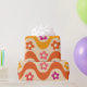 Det här är söta Retro 70-tals groovy små blommor på retro vågiga linjer i rosa, rött och orange. Det är coolt presentpapper för retro-tematiska födelsedagsfester och möhippor.