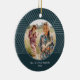 Denna vackra vinterblå helgdag har ett cirkelformat foto i mitten, och namn och år i enkel vit typografi. Det här trendigets dekoration har en faux metallisk, blå, strimlad geometrisk mönster och en mörk blått bakgrund. Se denna festliga insamling i säsong för ytterligare färg-alternativ och samordning av julkort.