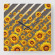 Snygg gula blommor på grått, guld rand fyrkantig klocka