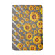 Vackert gula blommor på gråttets bakgrund med silver svarta rand.