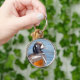 Snygg Harlequin Anka på Sten Rund Silverfärgad Nyckelring