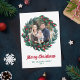 Snygg personlig med julkort med ditt foto inuti en rund berry och en grön krans, ditt namn och året. God jul med anpassningsbar och foto i ett ram med bergsutandning i traditionell färg, rött och grönt vid jul. Traditionellt julfotokort med en underbar illustration av en andedräkt runt foto från din familj.