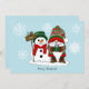 En snygg julgnom helt i rött, grönt och vitt som håller en mugg varm choklad står bredvid en snöman med en Glad Jul-skylt bredvid sig iförd en röd halsduk och mörkgrön hatt