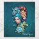 En vacker kvinnas huvud med ögon två stora lejona huvuden som framstår som mäktiga och stolta. Utformningen skapar en harmonisk koppling mellan kvinnans huvud och styrkan i lejona huvuden.
