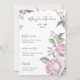 Vacker Pastel Soft Lila Watercolor Ro Blommigt Blooms och Bride och Grooms Namn i Söt Script med Blek Lila Back Bröllop Menu.