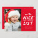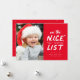 På den trevliga listan? Det här roliga julkortet är perfekt för dem som kanske står på jultomtens trevliga lista. Ibland står "nu kan jag förklara" för "nu kan jag förklara" - och det är perfekt för bilder av nerlighet men fortfarande bra barn eller husdjur. Det här röda, enfoto-helgdag kommer säkert att ge ansikte av vänner och familj ett leende.