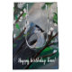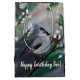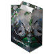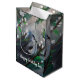 Vår fågel. Grått fågelmålning. Anpassad namnpresentväska.Grönt löv och vita blommar.