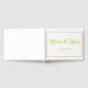 En underbar orange och grönt gäst bok har en orange gräns med grönt text. Med parets namn skrivet i grönt och datum. Beställ din i dag!