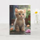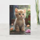 Snygg orange tabby katt sitter bland blomster tomt kort
