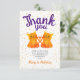 Det här vackra party-tacket som du har på kortet har två söta orangar med svan som en hjärtform. På framsidan finns en vit bakgrund som är helt vit med konfektliknande punkter från orange-guld, vilket skapar en glatt, lekfull känsla. Kortets baksida fortsätter temat med orangens bakgrund och matchar konfettliknande punkter. Texten är helt och hållet anpassade, vilket gör det möjligt för er att göra det personligt och uttrycka er tacksamhet på ert sätt. Den här charmerande designen är perfekten för ett hjärtligt tack till gästerna efter en roligt firande.