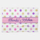 En vacker polarpunkt mönster, beundra rosa, lila, grönt och beige prickar på vit bakgrund. Så fin och charm fullt, anpassa ditt namn i en rosa- och lila-rektangel. Anpassa din i dag! Polka dots Art: AMBillustrations http://www.etsy.com/shop/AMBillustrations/