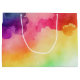 Gåspåse med en vattenfärgad bakgrund med färg av regnbågen.