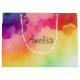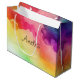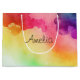 Gåspåse med en vattenfärgad bakgrund med färg av regnbågen.