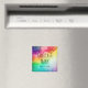 En magnet med en vattenfärgbakgrund som innehåller färg av regnbågen.