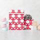 Vackra röda cirkeln mönster på vita bakgrundspresenter som är pappra.