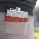 Snygg röd glitterflaska med vätskeinpackning i vin fickplunta