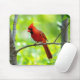 Det här är en mycket vacker, ljusröd kardinal i en Träd-musmatta/Mat