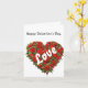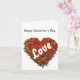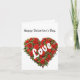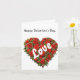 Kortet i Valentines day har ett hjärta som är tillverkat av röd ros mot en vit bakgrund med Kärlek i ord. Helt enkelt vacker.