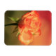 Söt orange ro står ut mot en suddig bakgrund i mjuk orange och grönt.